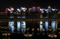 我们到达秋水广场的时候喷泉还没有开,我们就来到江边,对岸林立的楼房闪烁着五颜六色的灯光,并不停地变换着颜色,光柱倒映在江水中,随着江水的流动而闪动,仔细看去,滕王阁也在其中。我们在江边拍了一阵子,看到喷泉附近聚集的人越来越多,赶忙上来到喷泉便占据一个有利位置。
