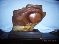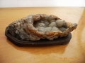 蒙驷告诉记者,1994年,近水楼台的他便开始玩奇石,凭借家住红水河边的优势,当年开始组织乡亲们深水打捞彩陶石。他们兄弟八个都爱好奇石,在广西是出了名的蒙家八兄弟。他们兄弟曾为柳州中华石都的创立出谋划策,为石都的招商引石作出了重大贡献。如今,在柳州中华石都的柳州东环奇石城,都分别有他们兄弟的奇石馆。现在他几兄弟家收藏精品彩陶石上百件。彩陶石只出产于柳州合山市马安村红水河十五滩,大概只有1公里的河段,由于彩陶石的存世量少,因而当时经过疯狂的打捞后,1997年就几乎资源枯竭。此时,另一石种出现了,那就是产于广西大化县的大化石。大化石比彩陶石色彩艳丽,而且分布在几十公里长的河流中,产量大,因而迅速在奇石市场上火爆起来。而这一时期,来宾市的来宾石与柳州三江县的三江石也陆续出现,以柳州为中心的奇石交易市场初具规模。